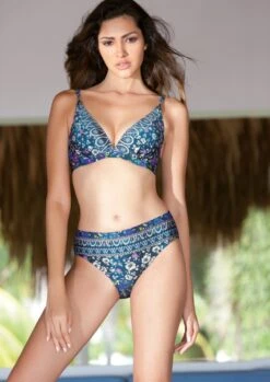 Knallgelber Untergrund mit einem Grafikdruck mit leuchtendem Orange, Flieder und Dunkelgrün. Knallige Neonfarben ergeben die frische und farbenfrohe Serie „SUNNY KISS“. Bikini mit Softschalen und Formbügel. Die Träger sind verstellbar und aushakbar. Hüfthose mit schmaler Seitenhöhe.