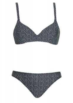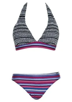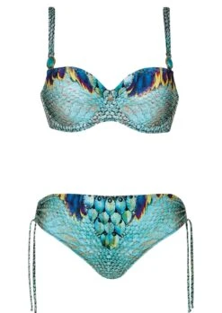 Druck mit Wow-Effekt! Marmorierter Untergrund in der Farbe Braun, darauf ein farbenprächtiger Print, inspiriert vom Stil der amerikanischen Ureinwohner. Bikini mit Spacer-Cup und Formbügel. Die Träger sind verstellbar und an der Rückseite aushakbar. Hüfthose mit schmaler Seitenhöhe.