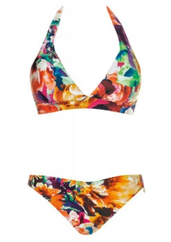 Geheimnisvoller Ethno-Style in wundervollen Grüntönen und Türkis. Tolle Farben harmonisch kombiniert. Bikini mit Formbügel, Petticoatstütze und verstellbaren Trägern. Die Cups sind seitlich höhenverstellbar. Der Bikinislip ist durch die seitlichen Bänder in der Höhe zu verstellen.