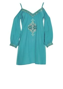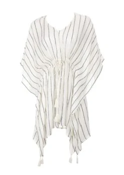 Bequemes T-Shirt-Kleid mit lässigem, geradem Schnitt. Das Shirt in Midi-Länge, kurzen Armen und Rundhalsausschnitt punktet mit dem eingesetzten Streifendesign. Ein tolles Cover-Up – perfekt für einen Badetag im Freibad, am Badesee oder Strand!