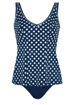 Atemberaubend dramatische Optik! Moderner Grafikprint in leuchtenden Blau-, Gelb- und Grüntönen. Tankini mit Softschalen. Die Träger sind verstellbar und am Rücken aushakbar. Der Zweiteiler ist durch die leichten Raffungen im vorderen Bereich besonders trage- und figurfreundlich. Taillienslip mit breiter Seitenhöhe in der Farbe Nachtblau.